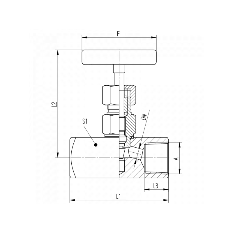 A DN PN / Bar L1 / mm L2 / mm L3 / mm F / mm S1 Material Art.Nr. PDF